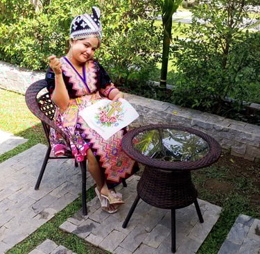 Nui, is a skilled Hmong embroidery artist whose work is deeply rooted in the rich textile traditions of her heritage. Her creations are characterized by intricate patterns, careful craftsmanship, and a profound respect for traditional Hmong design.